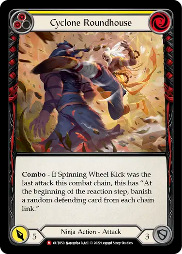 Combo - If Spinning Wheel Kick was the last attack this combat chain, this has "At the beginning of the reaction step, banish a random defending card from each chain link."