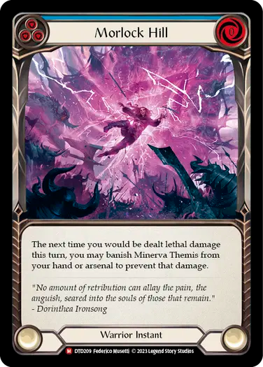 The next time you would be dealt lethal damage this turn, you may banish Minerva Themis from your hand or arsenal to prevent that damage.