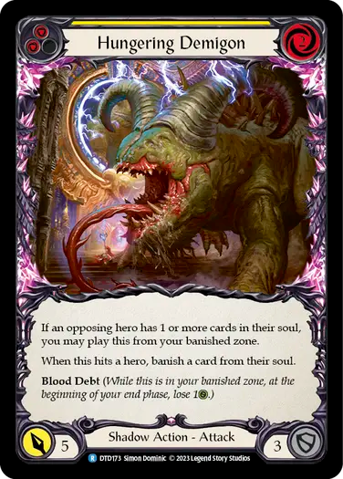 If an opposing hero has 1 or more cards in their soul, you may play this from your banished zone.