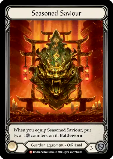 When you equip Seasoned Saviour, put two -1 [Defense] counters on it. Battleworn