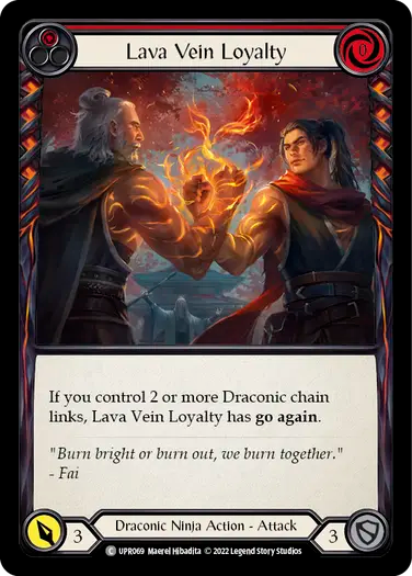 If you control 2 or more Draconic chain links, Lava Vein Loyalty has go again.