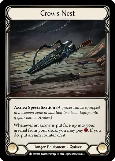 Whenever an arrow is put face up into your arsenal from your deck, you may pay [1 Resource]. If you do, put an aim counter on it.