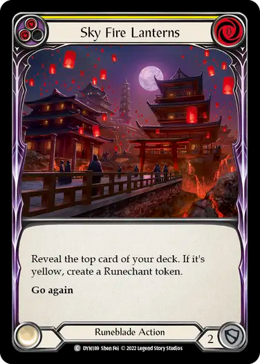 Reveal the top card of your deck. If it's yellow, create a Runechant token.