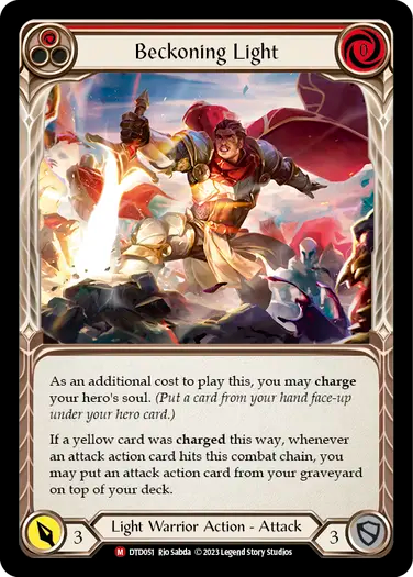 As an additional cost to play this, you may charge your hero's soul. (Put a card from your hand face-up under your hero card.)