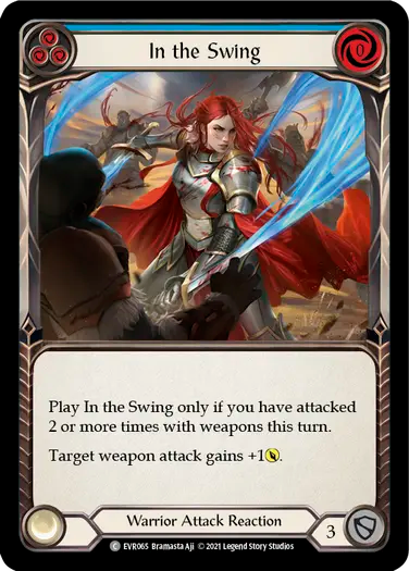 Play In the Swing only if you have attacked 2 or more times with weapons this turn.