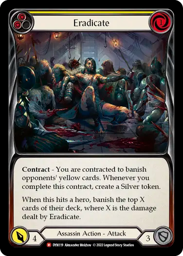 When this hits a hero, banish the top X cards of their deck, where X is the damage dealt by Eradicate.