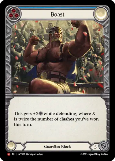 This gets +X ARMOR while defending, where X is twice the number of clashes you've won this turn.