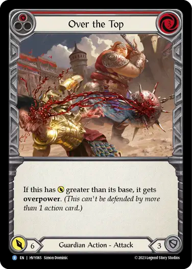 If this has POWER greater than its base, it gets overpower. (This can't be defended by more than 1 action card.)