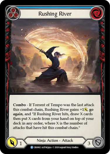 Combo - If Torrent of Tempo was the last attack this combat chain, Rushing River gains +1 [Power], go again, and "If Rushing River hits, draw X cards then put X cards from your hand on top of your deck in any order, where X is the number of attacks that have hit this combat chain."