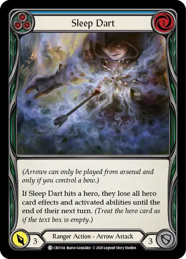 If Sleep Dart hits a hero, they lose all hero card effects and activated abilities until the end of their next turn.
