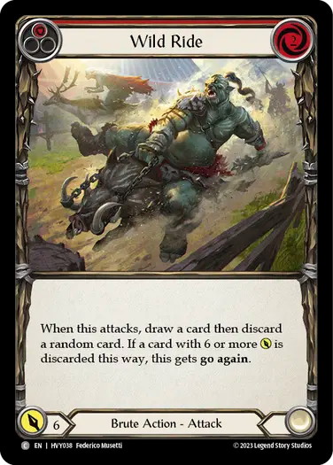 When this attacks, draw a card then discard a random card. If a card with 6 or more POWER is discarded this way, this gets Go again.